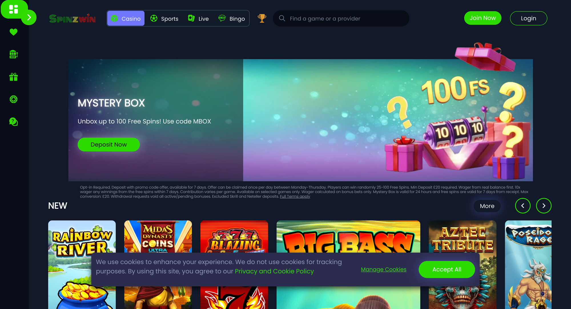 Spinzwin is run by ProgressPlay and holds UKGC licence 39335. It's one of only two sites on this list with a dedicated app for both iOS and Android, and the app itself has biometric login, making it one of the most secure ways to play at any UK pay by mobile casino right now.
